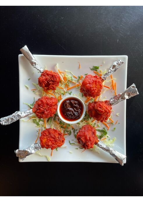 Chicken pakoda, ginger, garlic with Chinese spices cooked in Indian style.