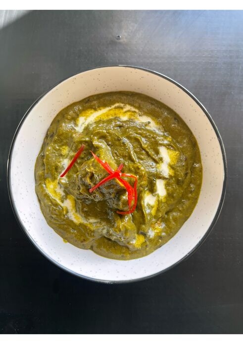 Homemade cottage cheese, cooked with spinach and spices creamy style. Free boiled rice provided with all the curries.