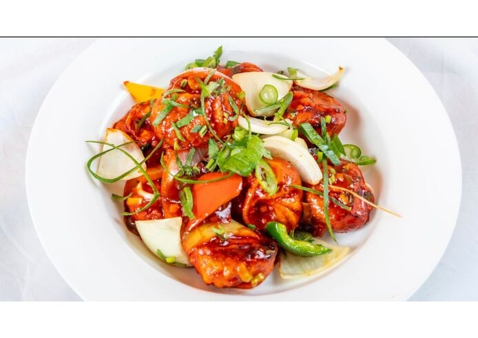 Chicken pakora cooked with curry leaves and ginger garlic, garnished with spring onion. No Rice.
